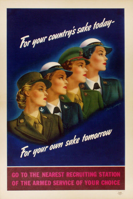 Recruitment poster for WAVES, WACs, SPARs, Marine Auxiliary, and Nursing Corps in WWII Credit: National Museum of American History