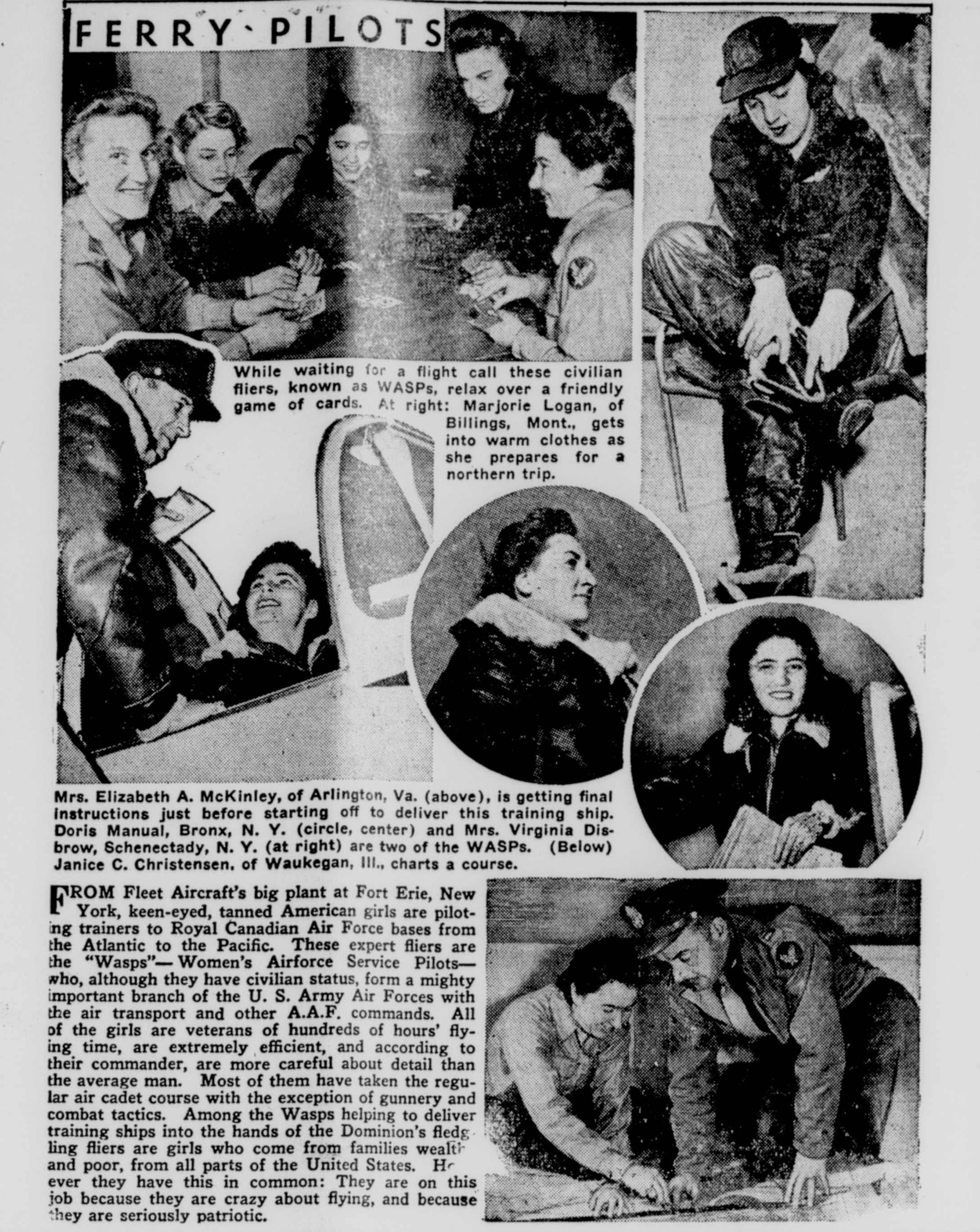 The ferry work was done practically altogether by daylight. Most of the other operational activities were done by day and night. WASP were fully utilized on operational duties within 8 months from the time they started training."