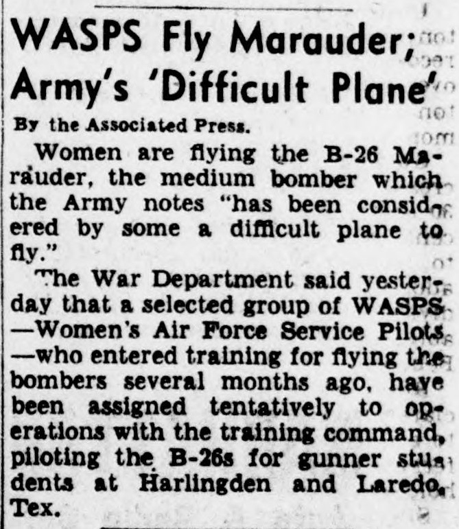 “[The two WASP pilots flying the B-29] are carrying some tests on engine heat, and what have you. Quite a big job for two delicate dishes of femininity. Perhaps they should take some of our supermen for a ride and show them how to get off the ground with speed dispatch at a low head temperature."