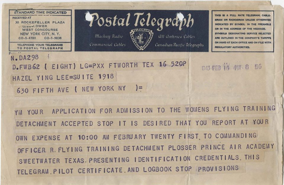 ~ Maggie Gee, WASP Class 44-W-9, one of two Asian American WASPs (University of California Berkeley, Oral History Center, "Maggie Gee: Rosie the Riveter World War II American Homefront Oral History Project.")