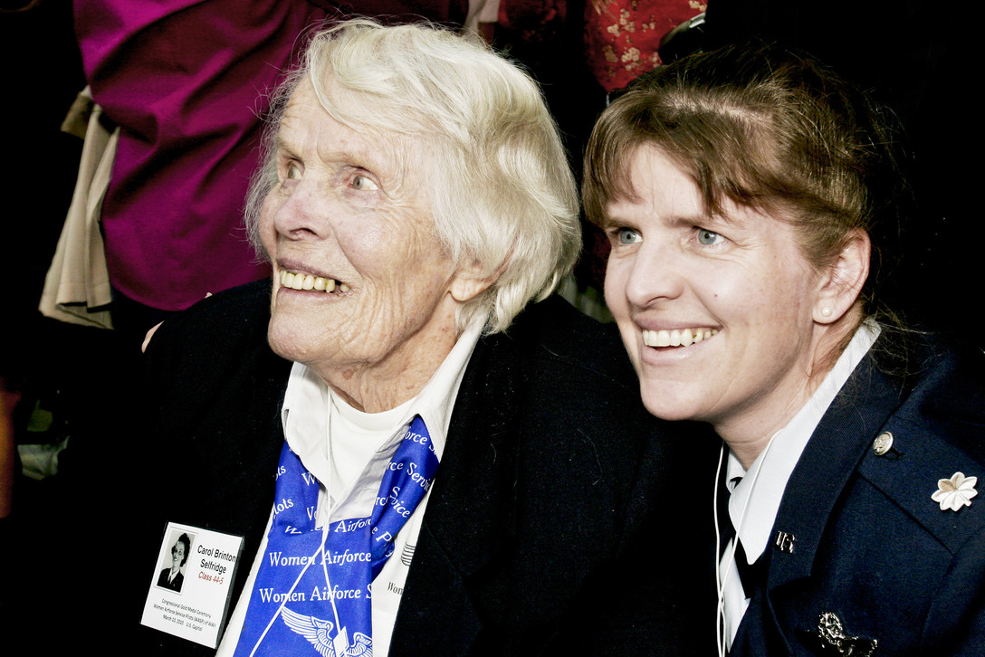 Lt. Col. Christy Kayser-Cook and her grandmother, WASP Carol Brinton Selfridge 44-W-5. Credit: Linda Hosek, Department of Defense.