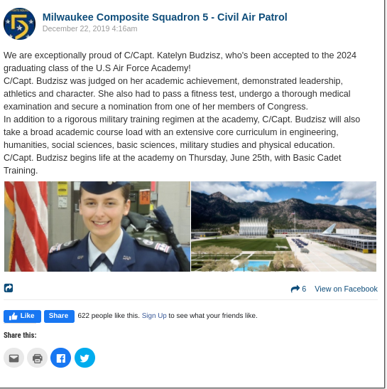 The announcement that C/Capt. Budzisz would enter the USAF Academy Credit: US CAP Composite Squadron 5